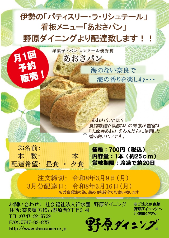 3月のあおさパンの申し込み書です。